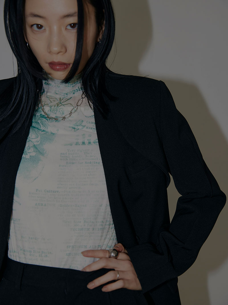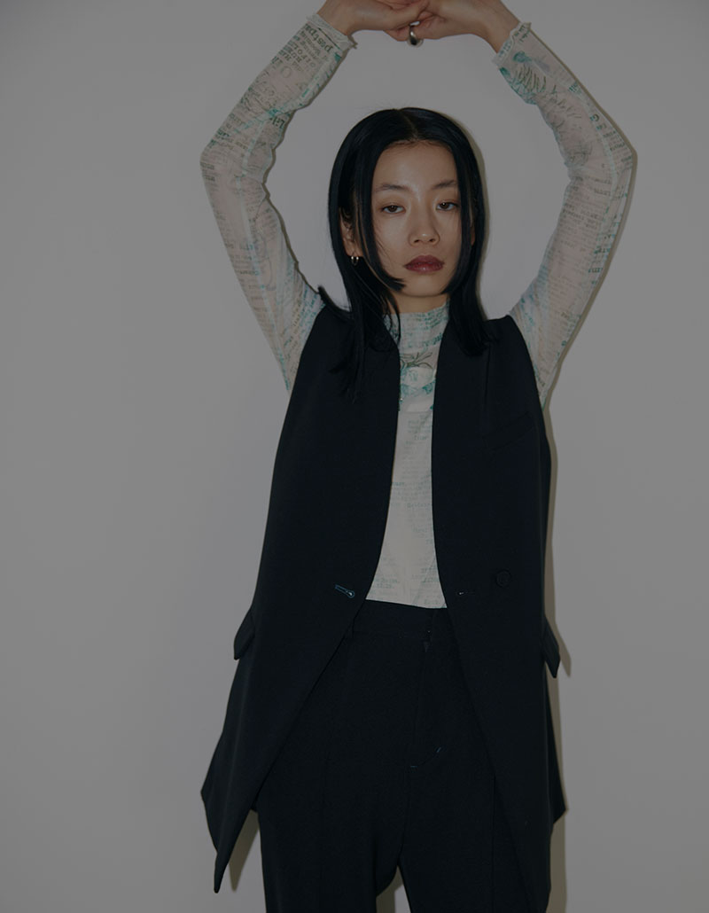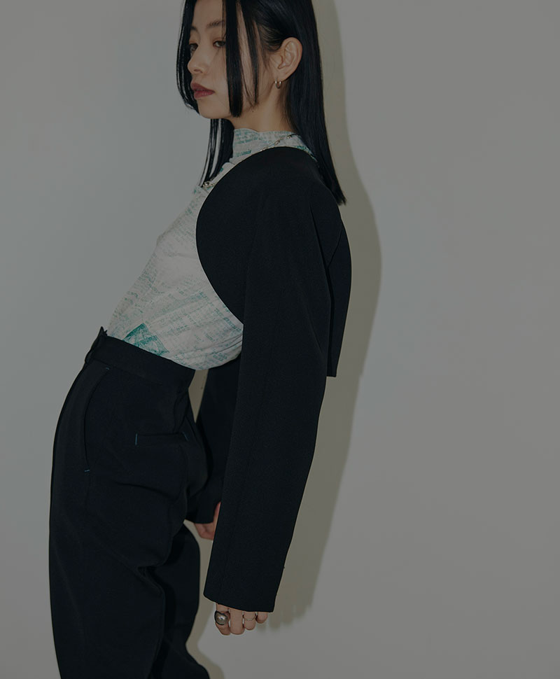 ボレロとベストをレイヤードした構築的なジャケット。