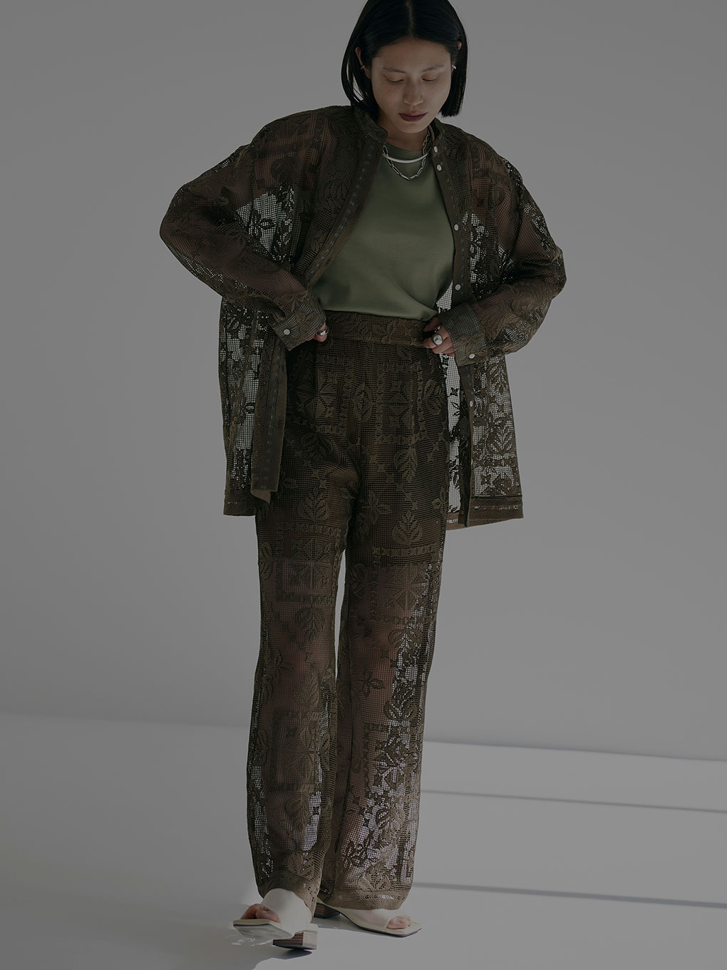 ヴィンテージテーブルクロスから着想を得た柄をレースに落とし込み、透け感のある夏らしいアイテムです。