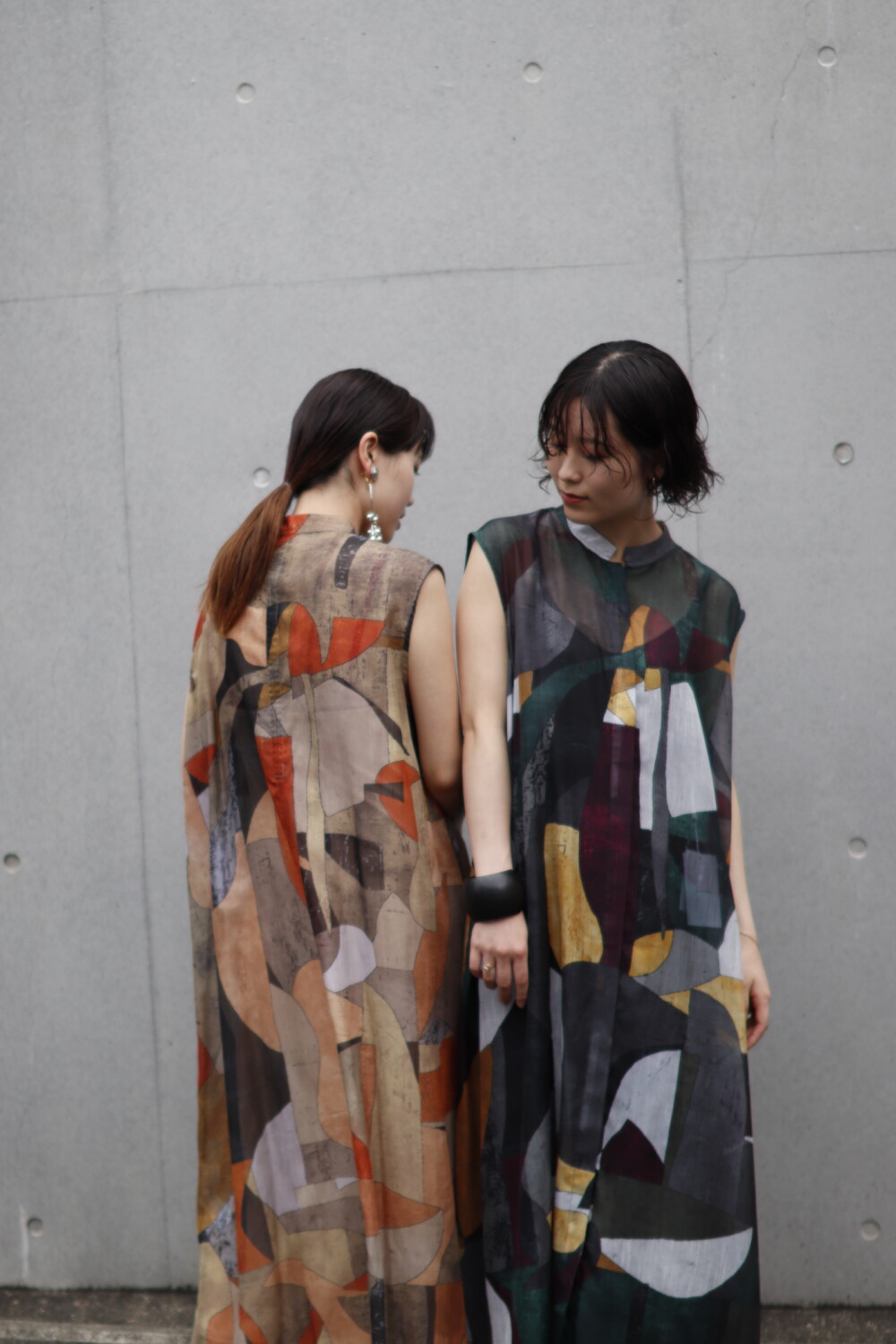 壁画をテキスタイルに落とし込んだオリジナル柄の2WAYシャツドレス。