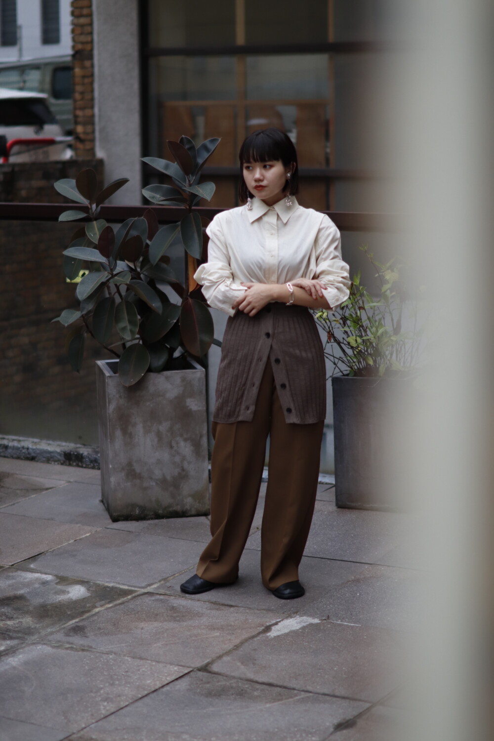 シンプルなシャツと合わせたり、タートルネックと合わせたり、柄物と合わせても可愛いですね(^^)