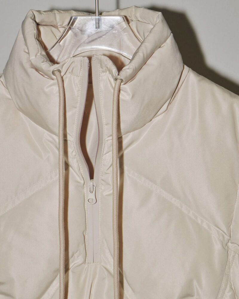 プルオーバータイプのキルティングベストはコンパクトな仕立ての為、