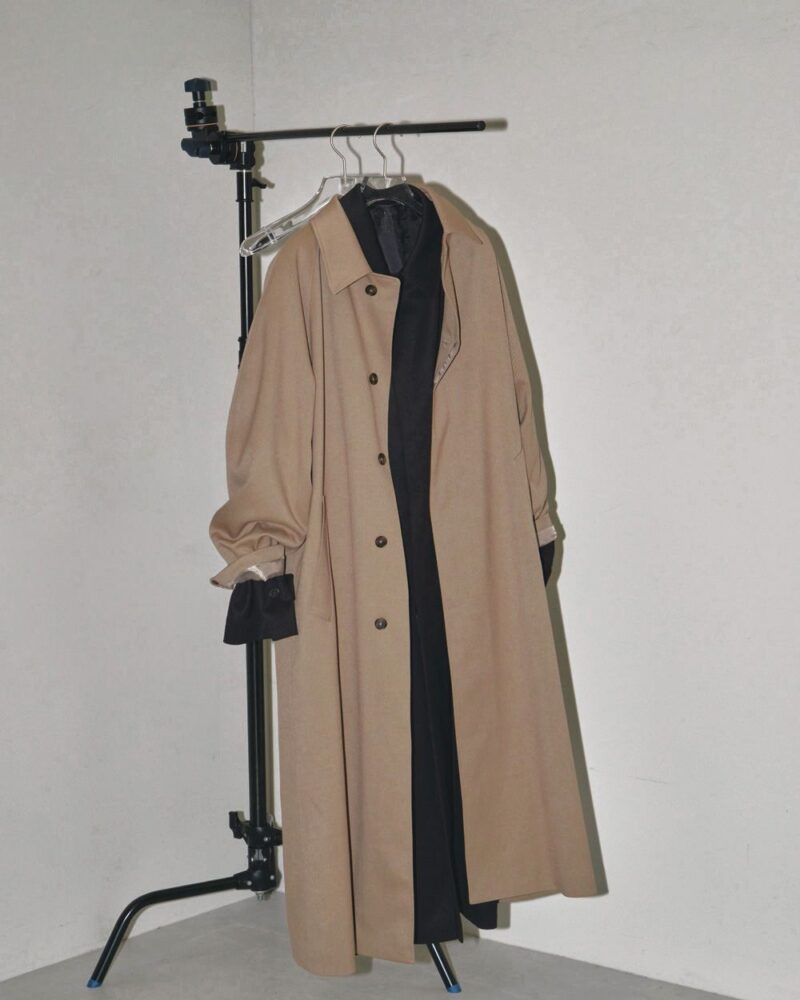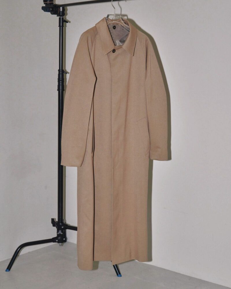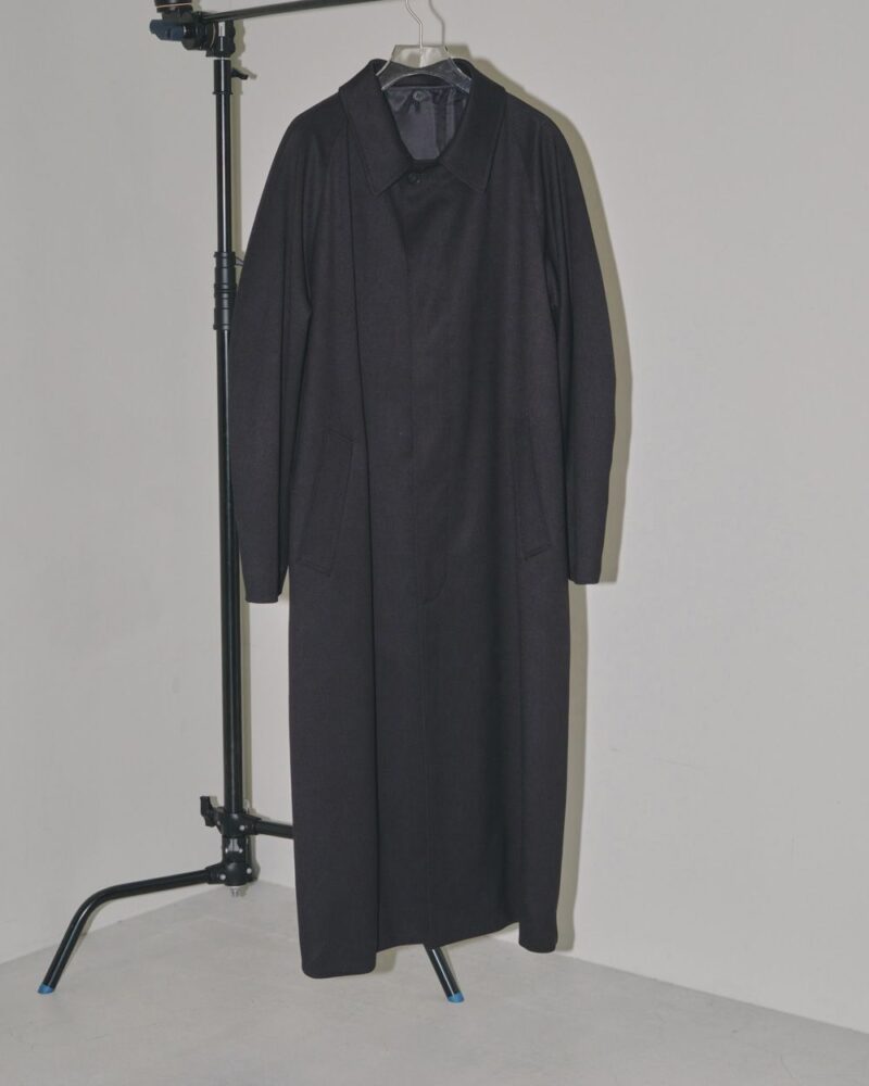 ミニマルなデザインで、しっかりと重厚感のあるツイル生地を使用したステンカラーコート。