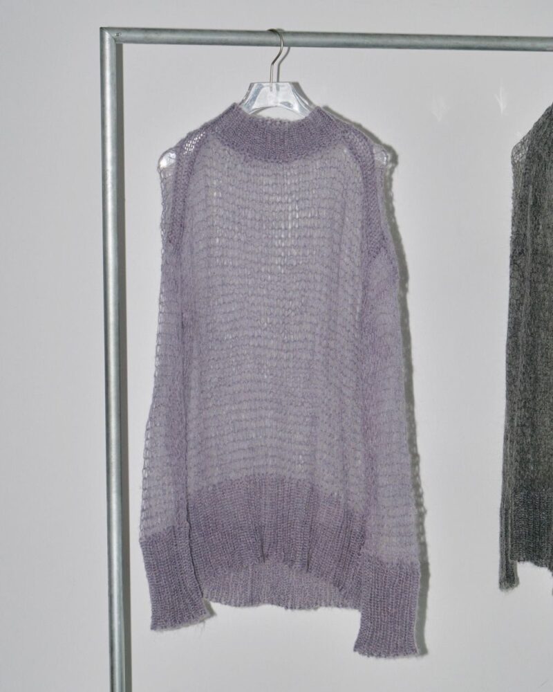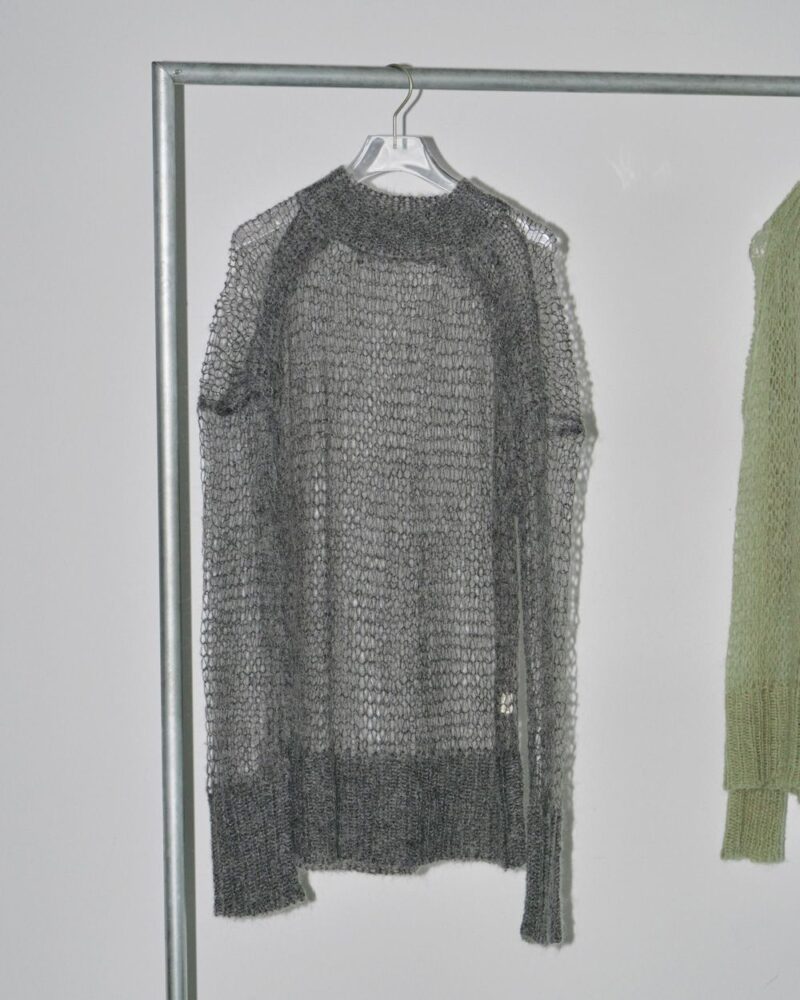 ふわっとしたモヘア糸を緩くローゲージに編んだニット。