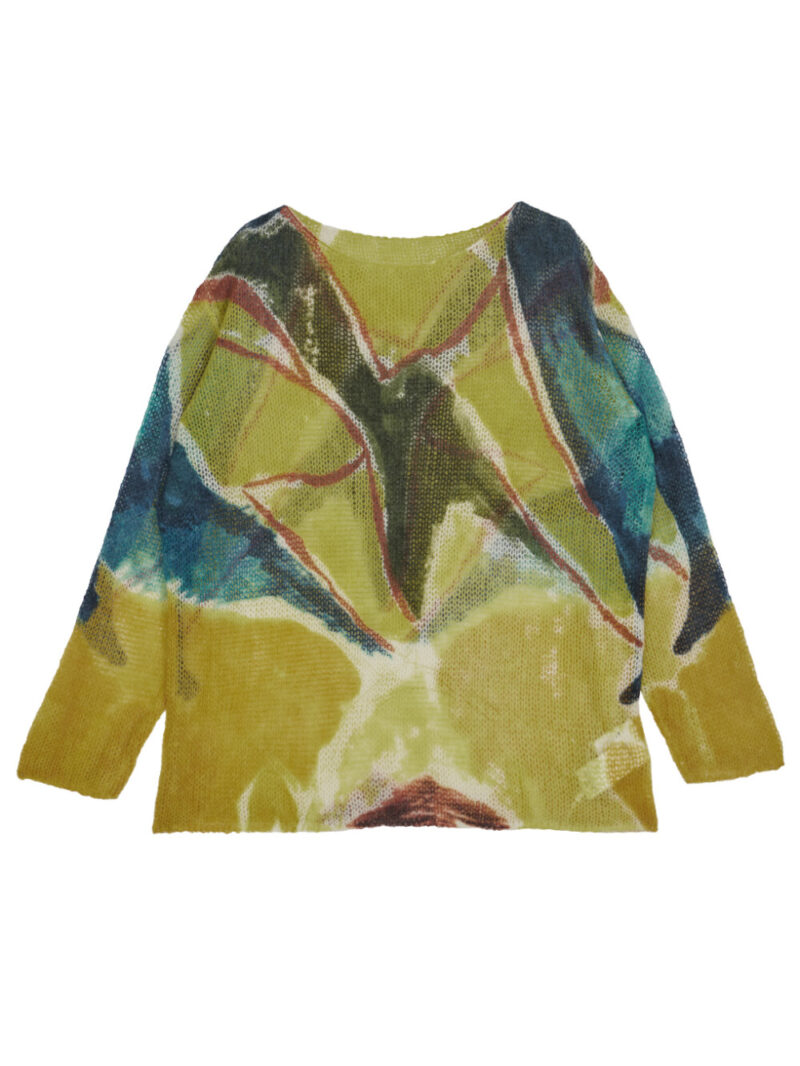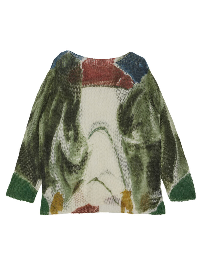 デザイナーの手描きイラストを大胆にプリントしたニットトップス。
