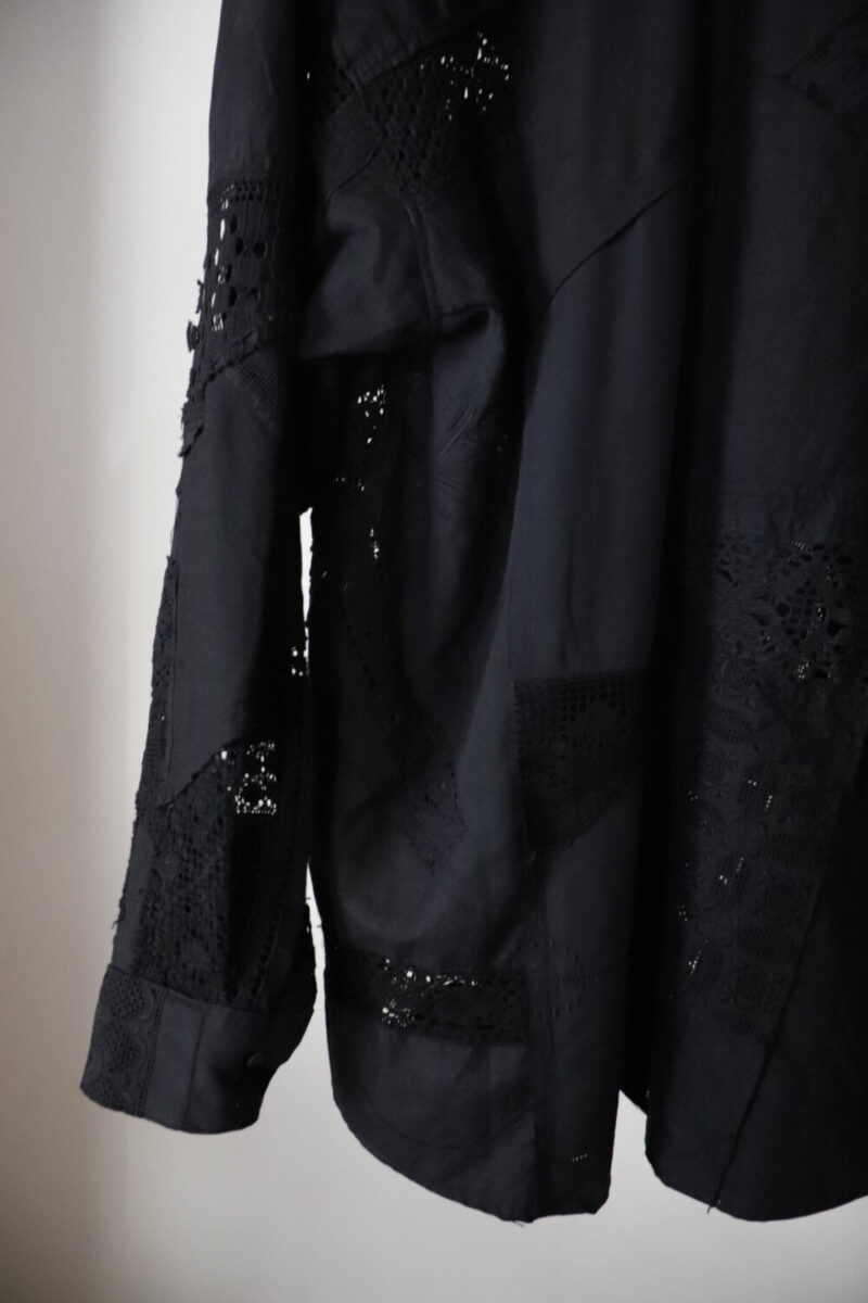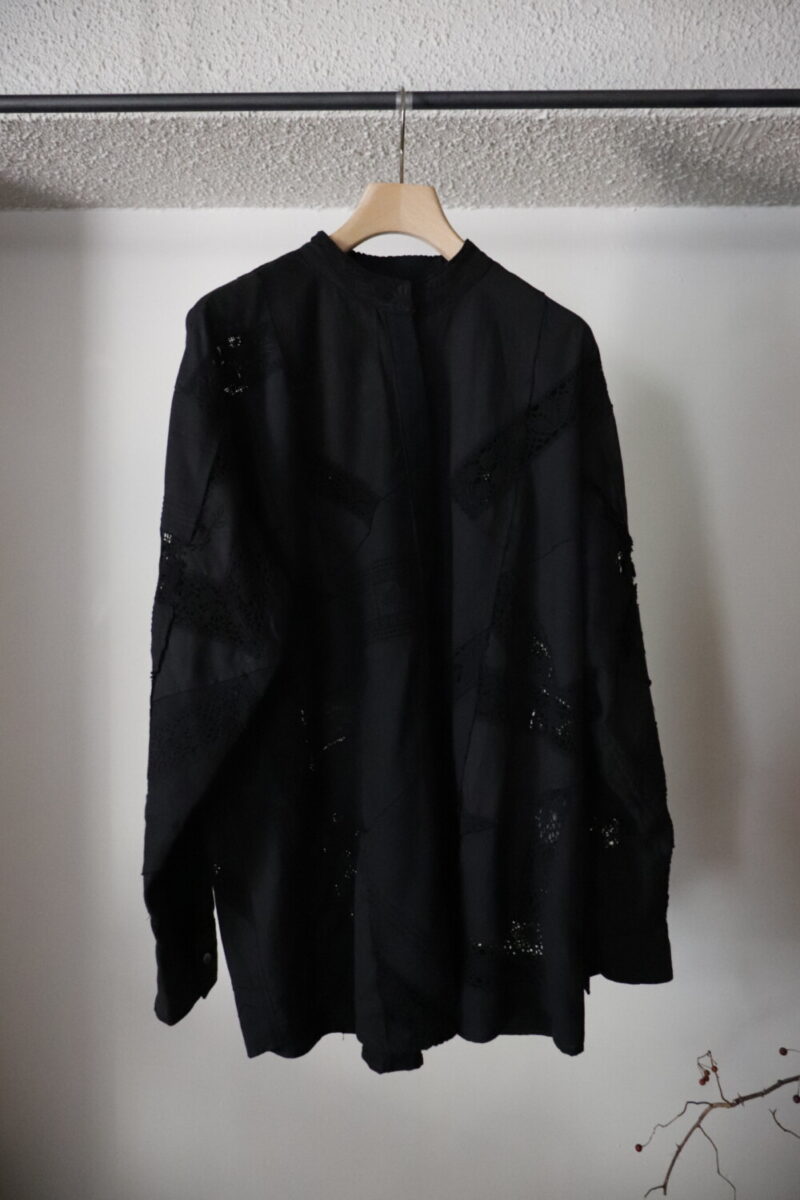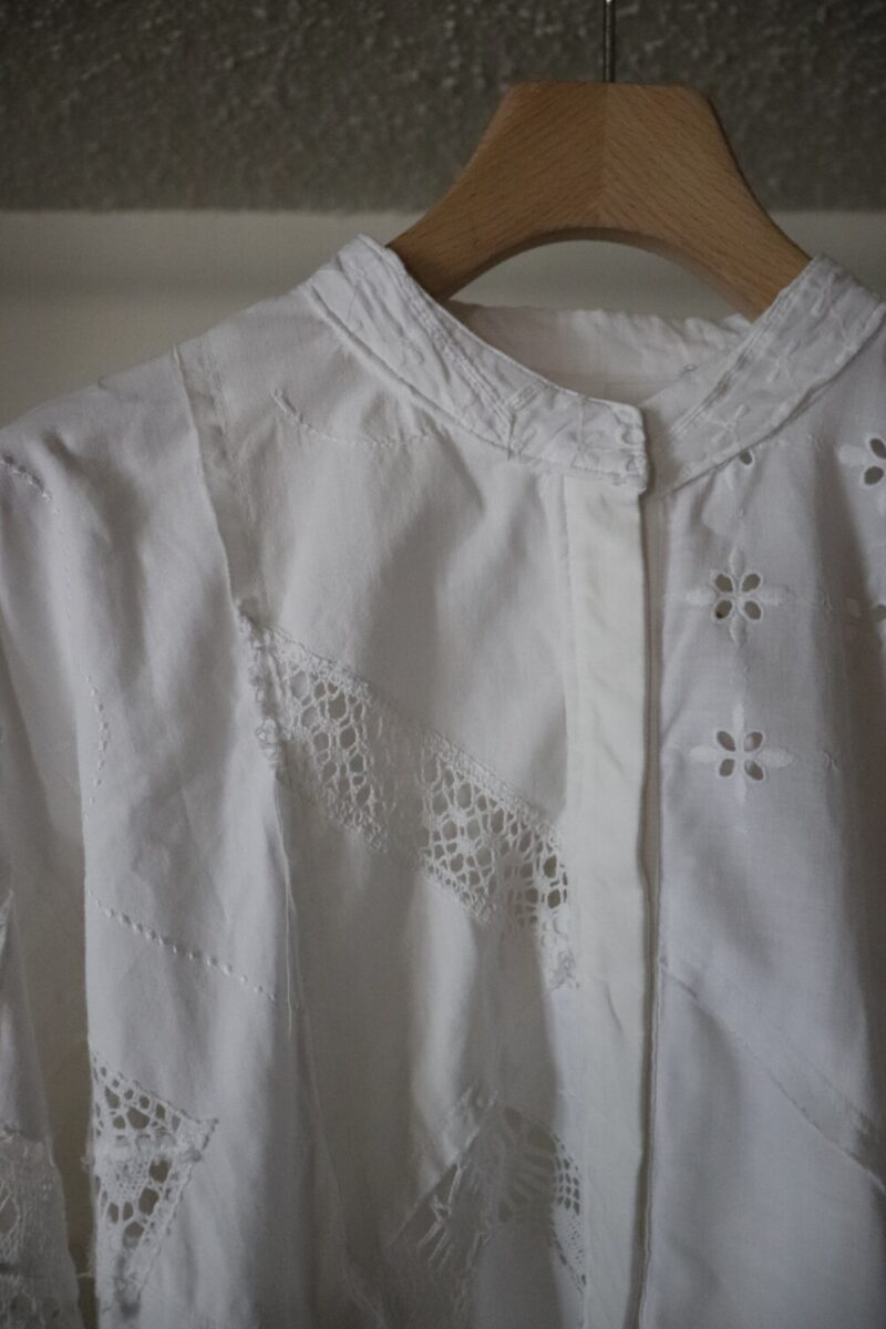ユーズドのピローケースを使用したBigスタンドカラーシャツ。