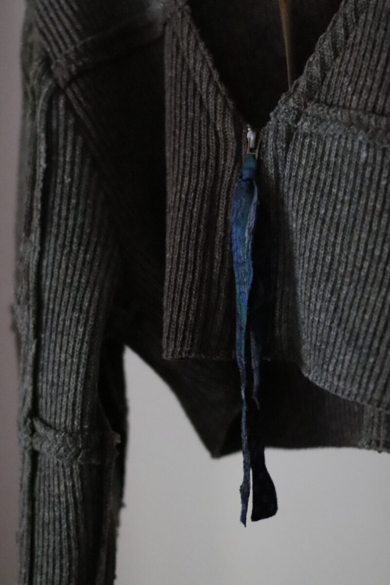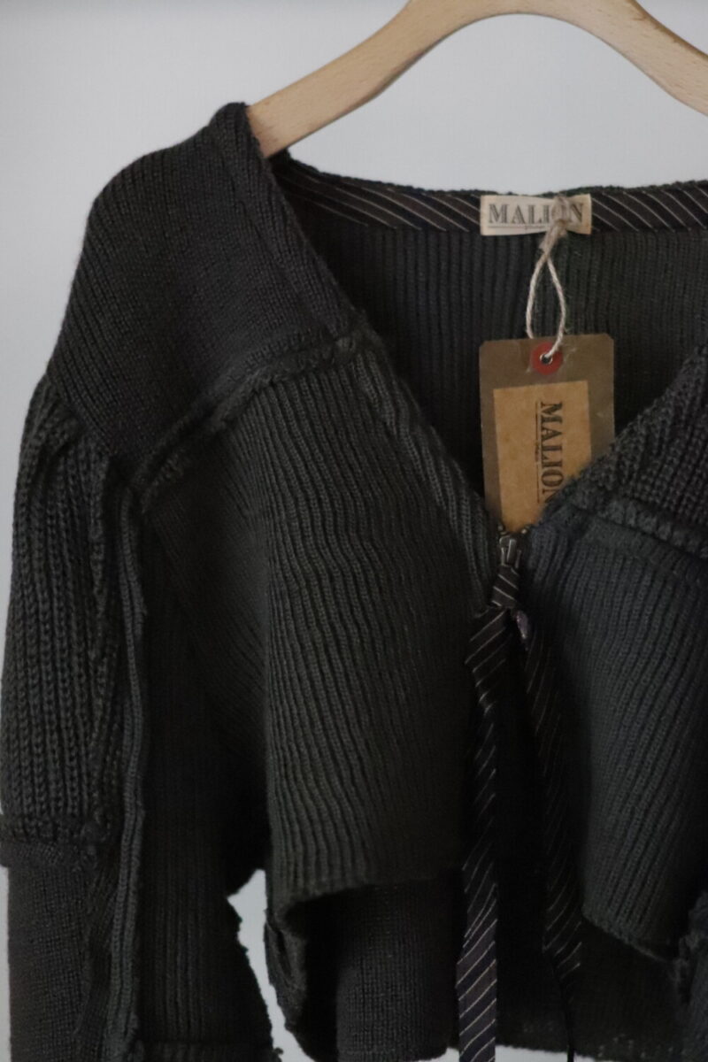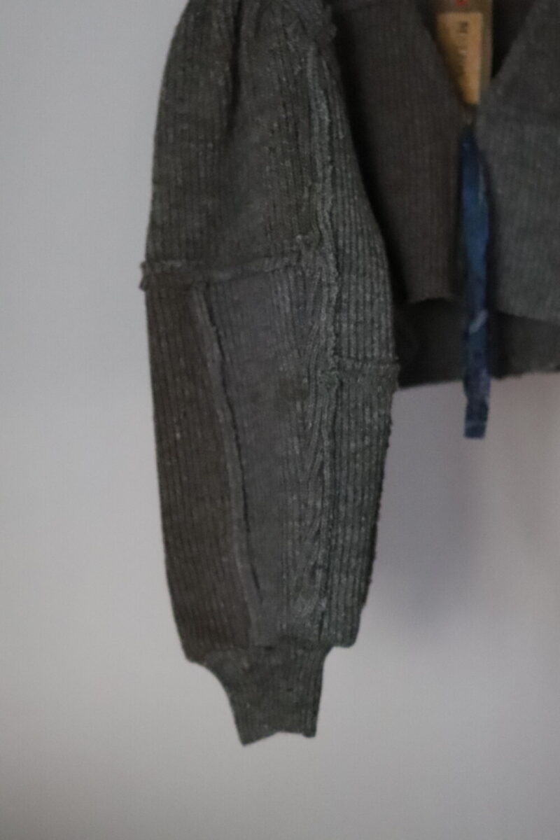 ユーズドのミリタリーリブを使用したショート丈カーディガン。