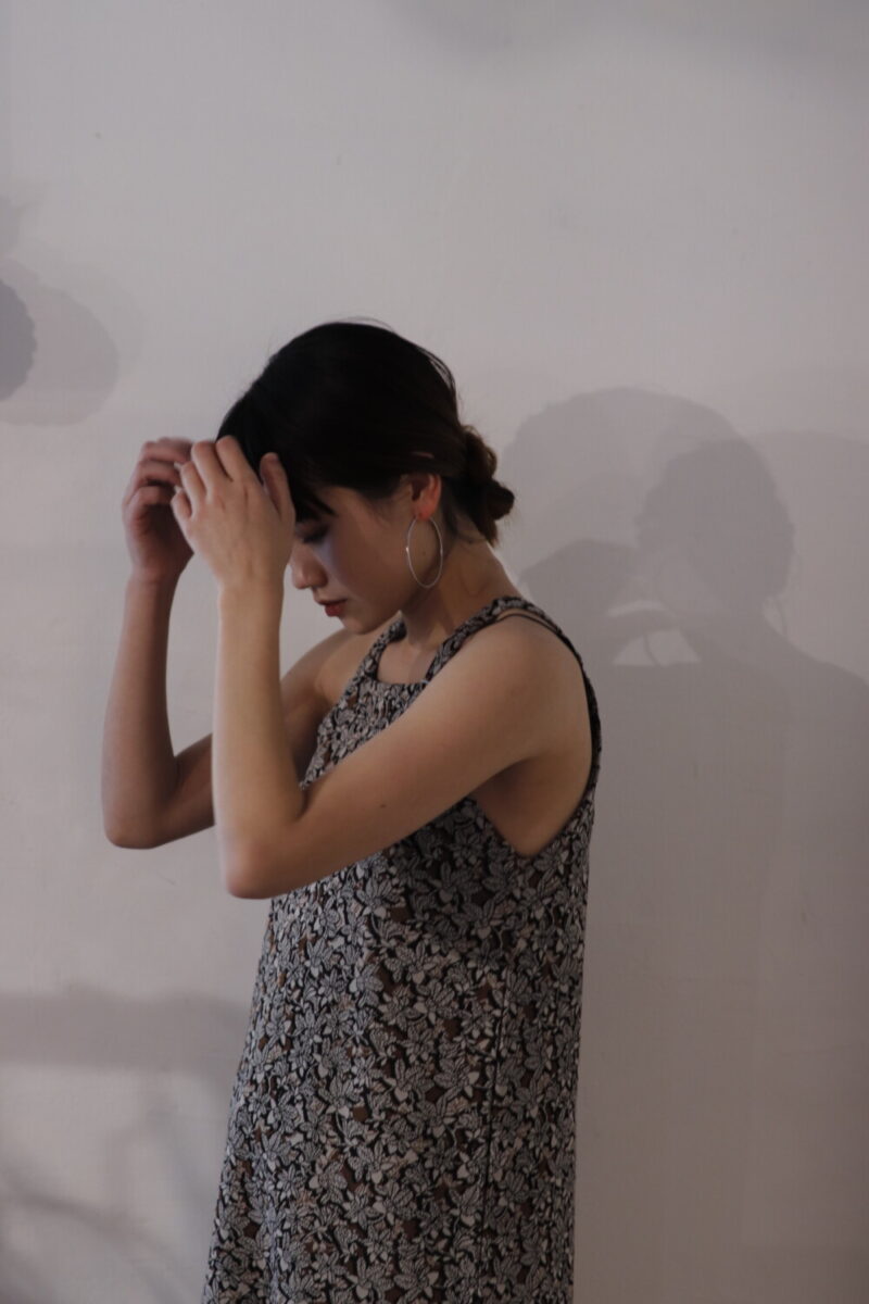 FUMIE=TANAKAオリジナルジャガード生地で作り上げたワンピース。