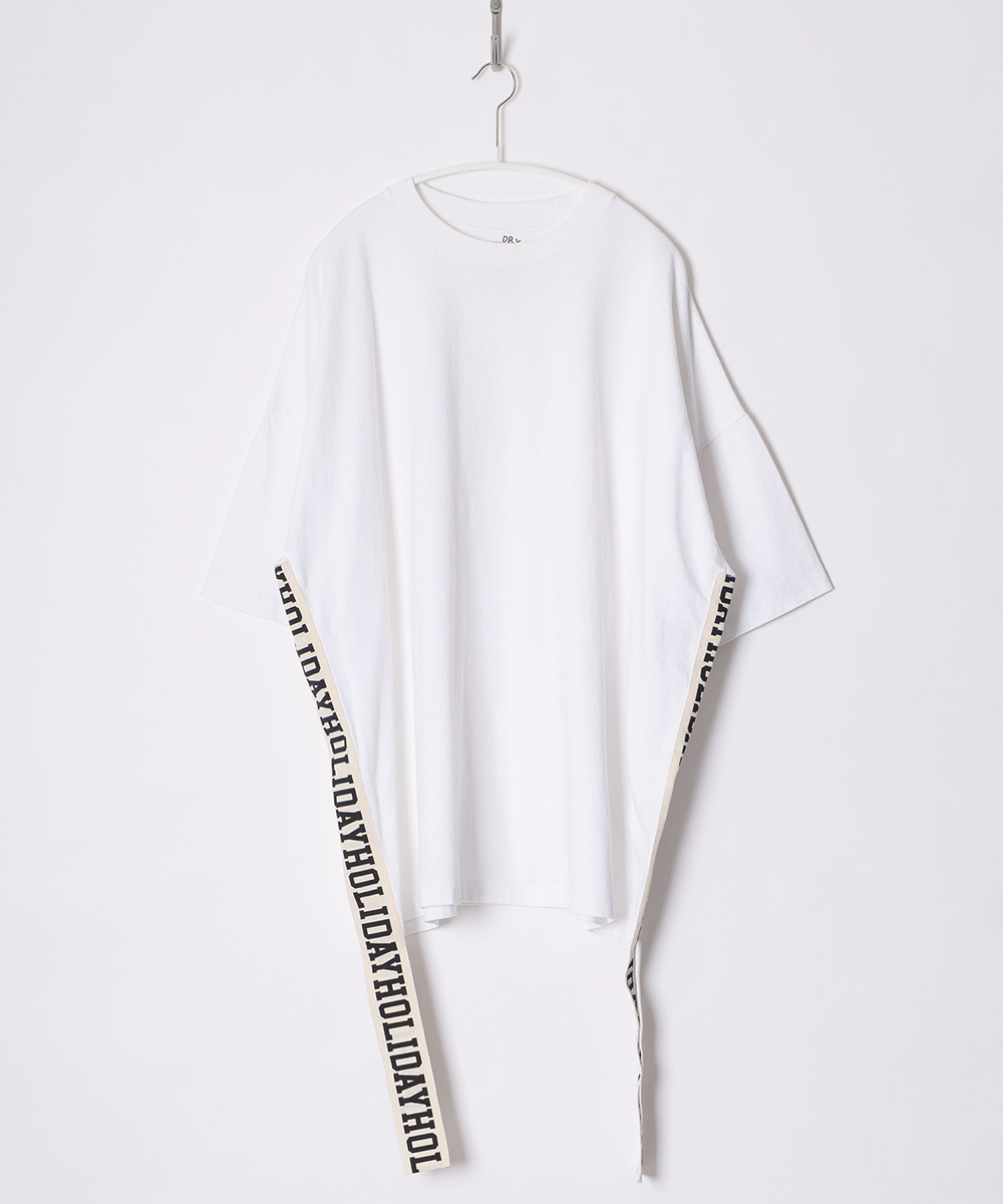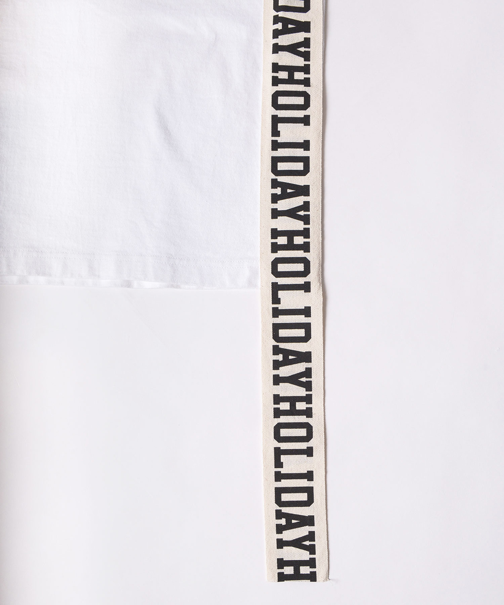 サイドにHOLIDAYロゴテープをあしらったビッグシルエットのS/Sカットソー。ボディは厚手でドライな質感が特徴のHOLIDAYオリジナル素材のSUPER FINE DRY T-SHIRT。ミニドレスとしても着用可能。