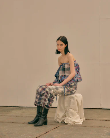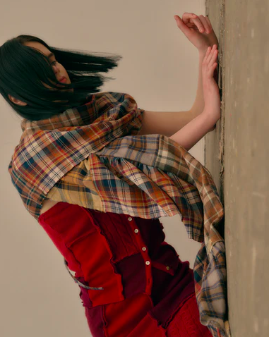 こちらもネルチェックシャツをふんだんに使用したフリルストール。