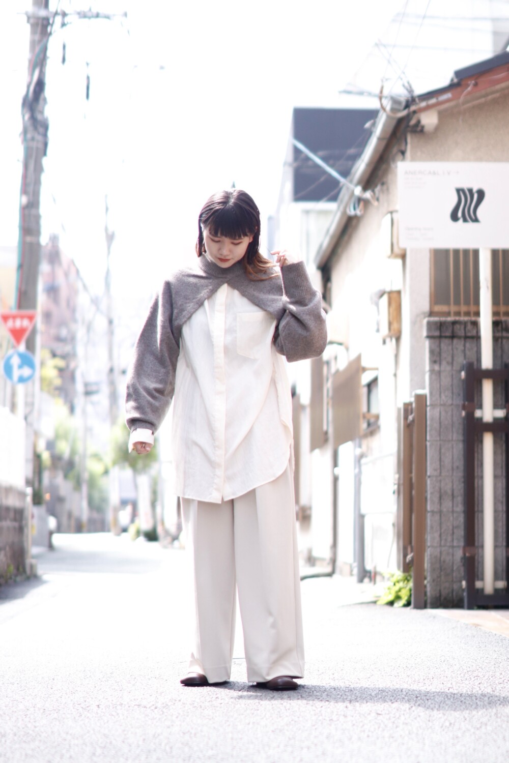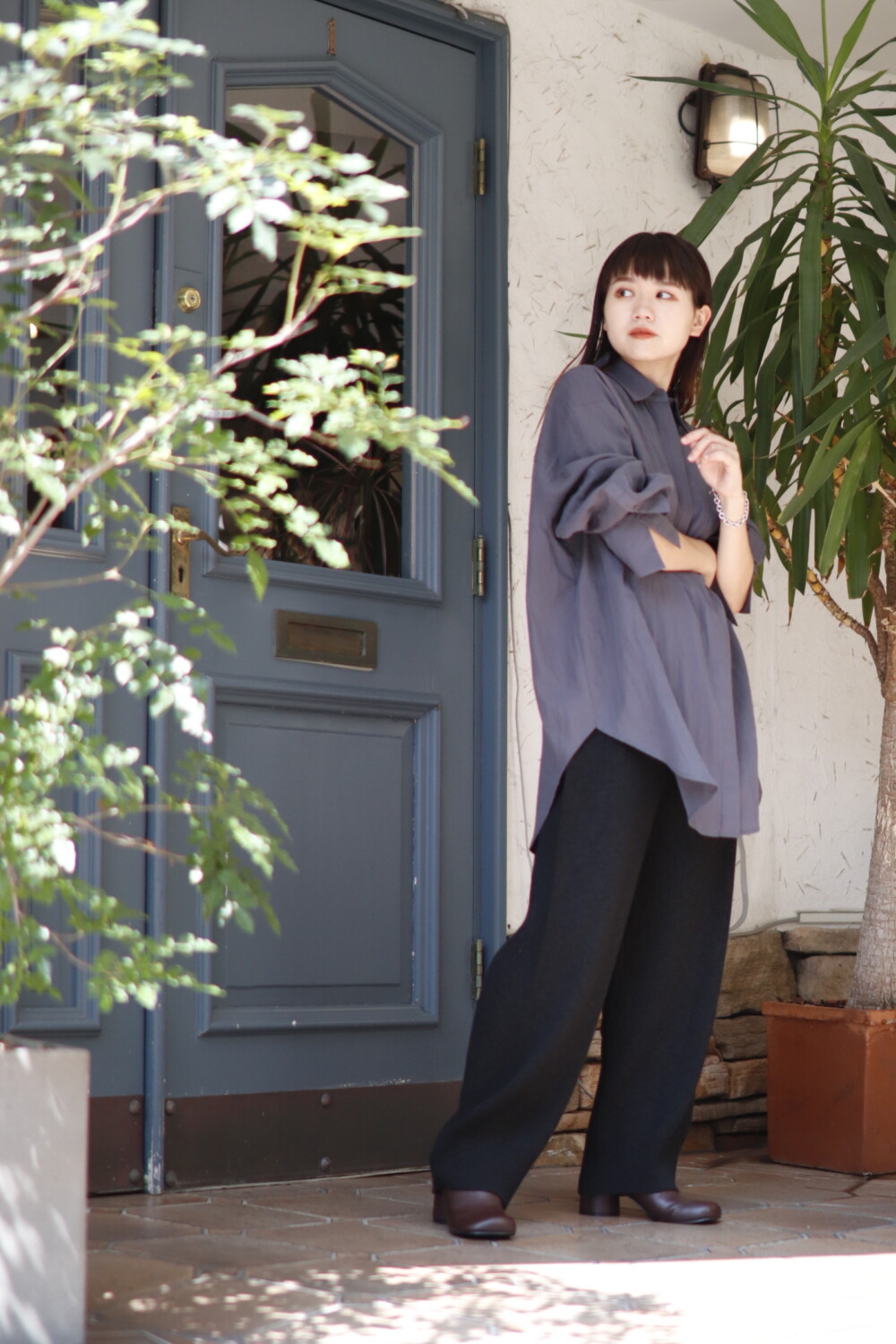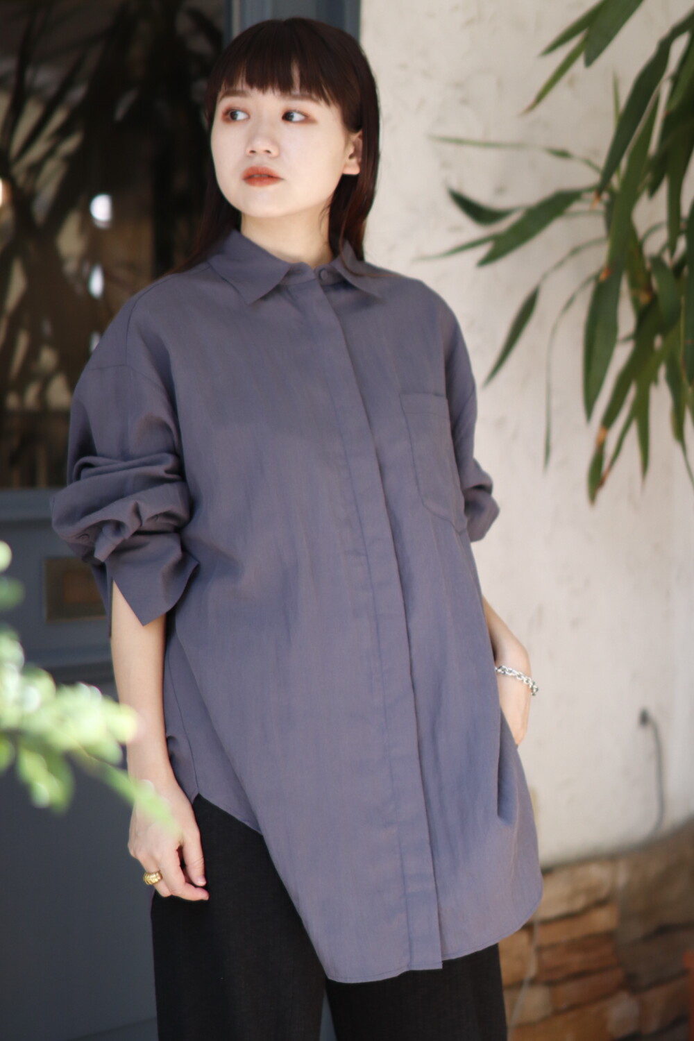 しっとりとした落ち感があるのでジャケットのインナーにも、ワイドパンツにも着回せるアイテム。