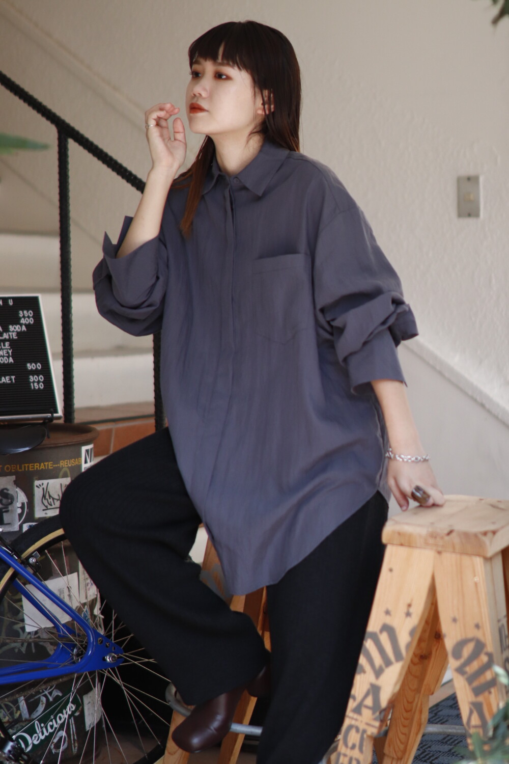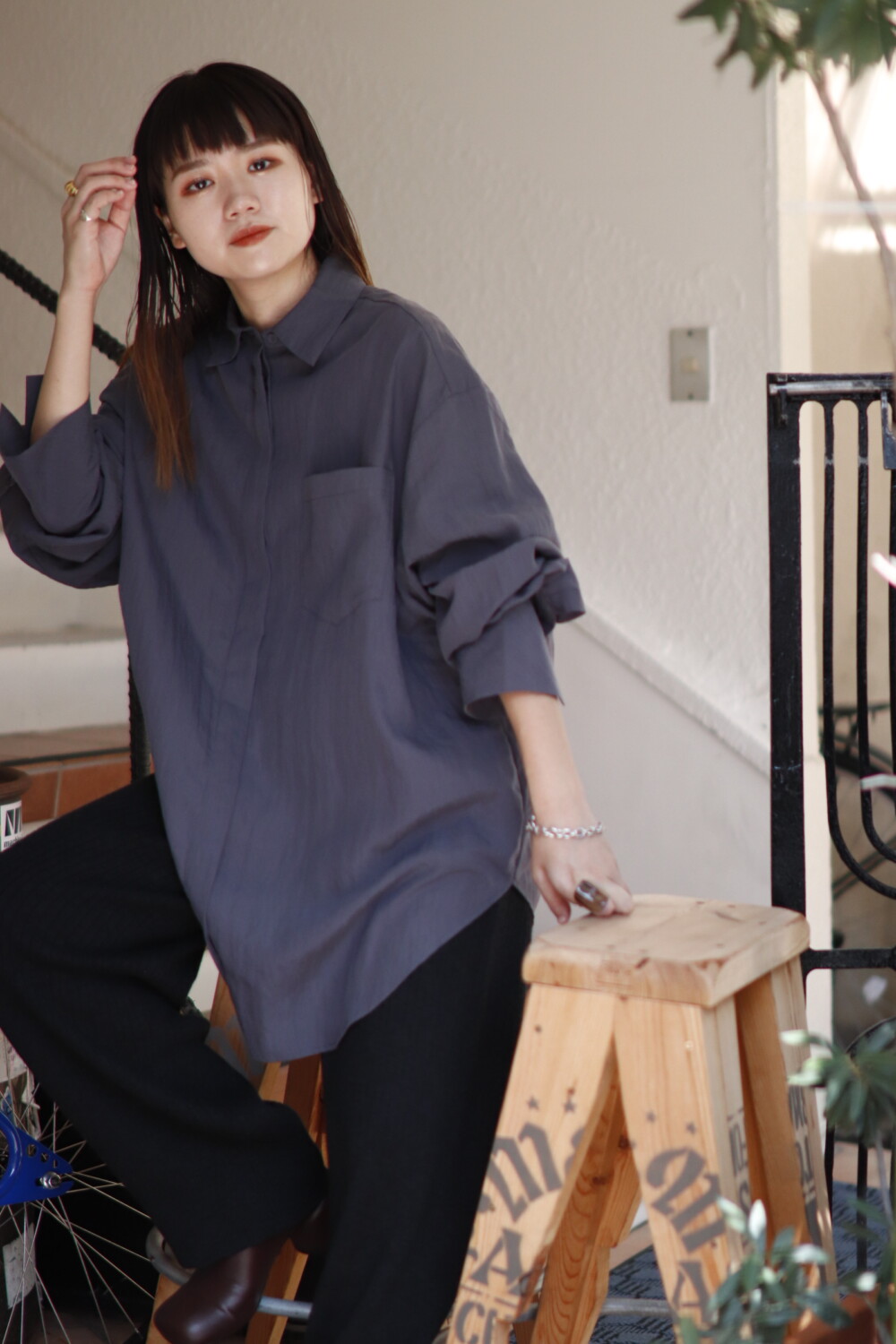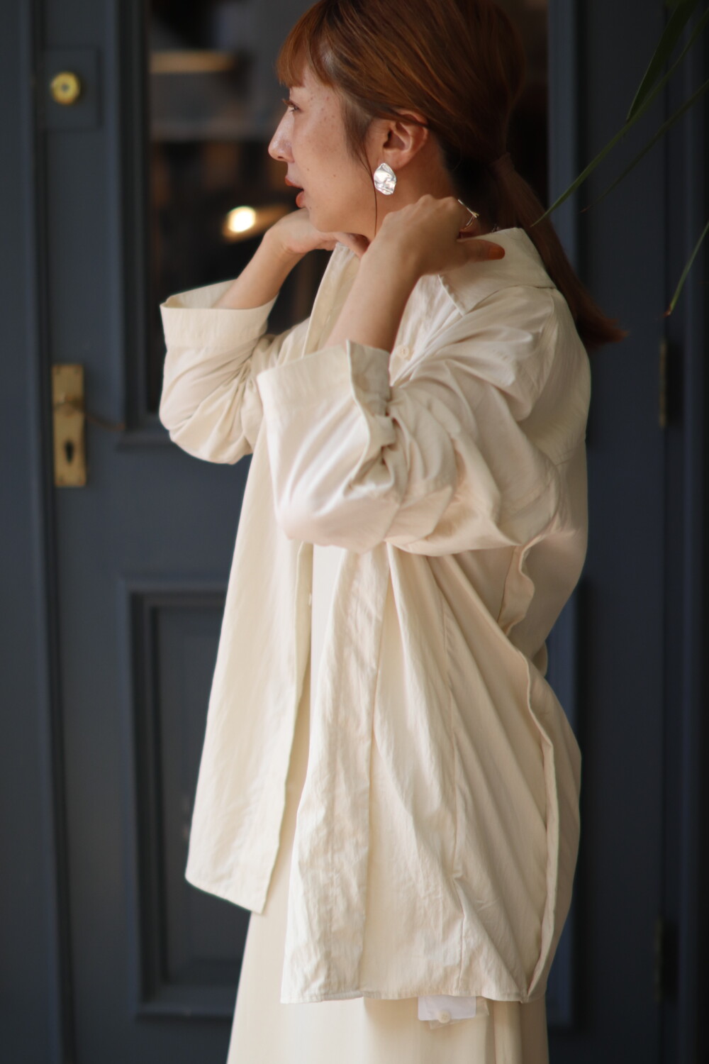 しっとりとした落ち感があるのでジャケットのインナーにも、ワイドパンツにも着回せるアイテム。