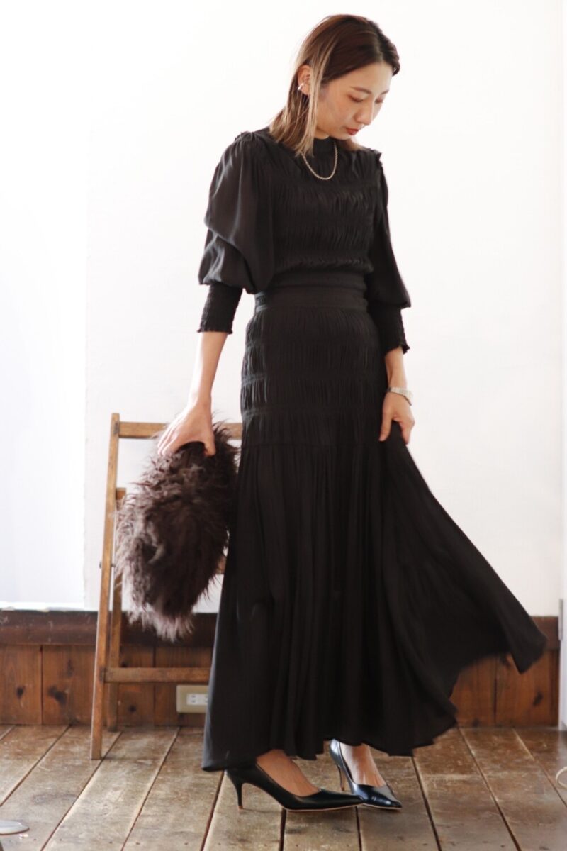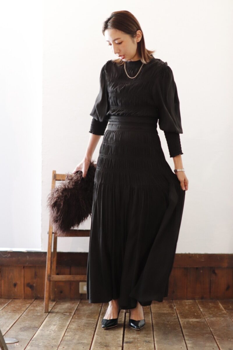 細部までデザインに拘ったシャーリングドレスは、上品さと抜け感をあわせ持った女性らしいデザイン。