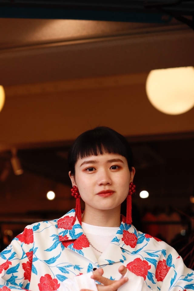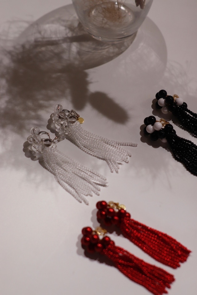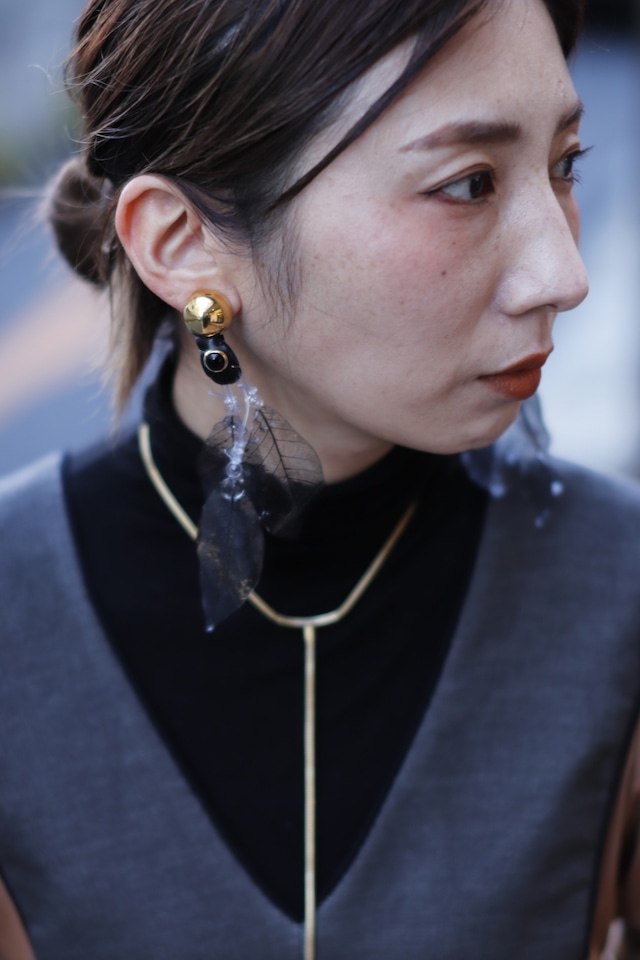ボリュームのあるイヤリングですが、付け心地も軽く華やかな印象に。